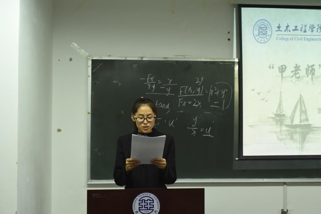 一年前的今天她从院长手中接过聘书,深感责任之重,用自己无私奉献的精神照亮了整个“甲老师”讲堂的天空,无数次的挑灯夜战为学弟学妹们备课,不知疲倦的为学弟学妹们答疑解惑。想说的话太多了,王雯慧将千言万语凝结成了一句话:因为我是土木人,因为我是甲老师,所以,我成为了更好的我自己。一届又一届的“甲老师”从曾经在讲台下听讲到慢慢走上讲台讲给别人听 从曾经受人帮助成长蜕变为后来慢慢可以影响更多的人 。他们在“甲老师”讲堂里不断储备能量、积攒力量、破茧成蝶到最后成为更好的自己,“甲老师”讲堂是他们心中最美好的回忆。